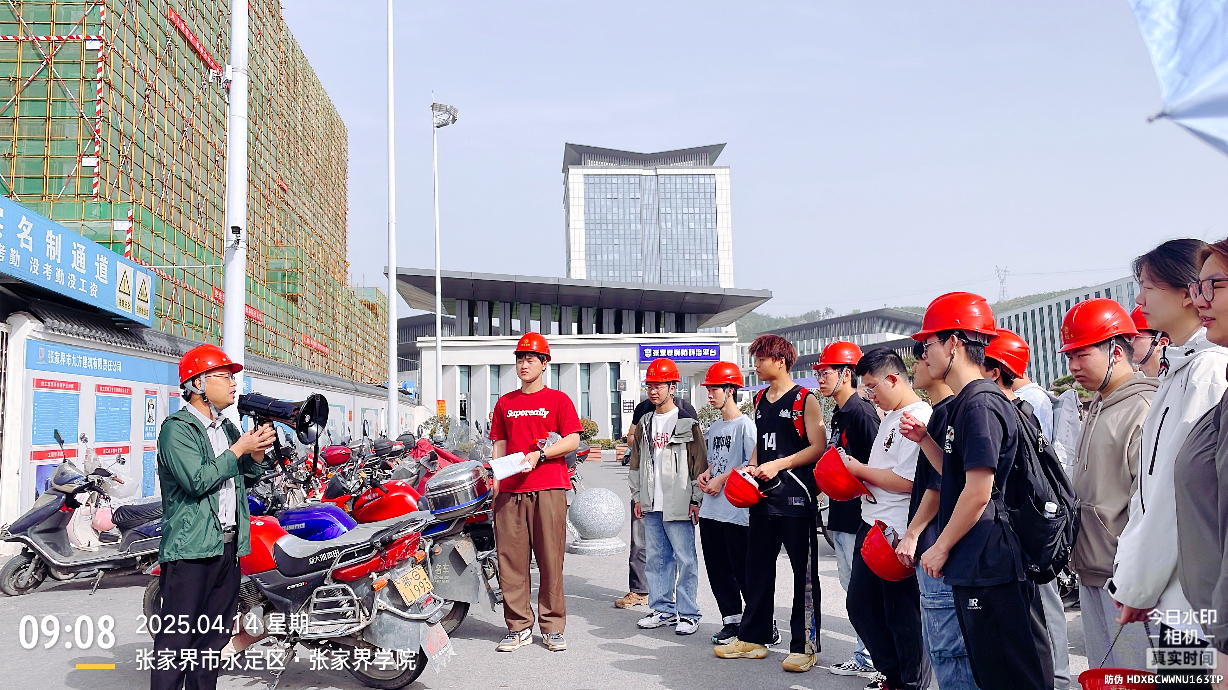 在实习的第一天,两个专业各自开启了一场别具特色的认知之旅。土木工程专业的师生们来到了鸬鹚湾大桥、贺龙体育馆以及高架桥项目现场,深入探究桥梁、体育场馆及交通枢纽工程的设计理念和施工工艺,切身感受到了土木工程在城市建设进程中的关键作用。与此同时,智能建造专业的师生们则前往张家界学院,实地参观了国际交流中心、望岳楼、体育馆等建筑,通过这些建筑实景并结合其设计理念,对建筑功能布局与空间构造进行了深入探讨,初步感知了建筑与智能建造技术深度融合所蕴含的无限可能。