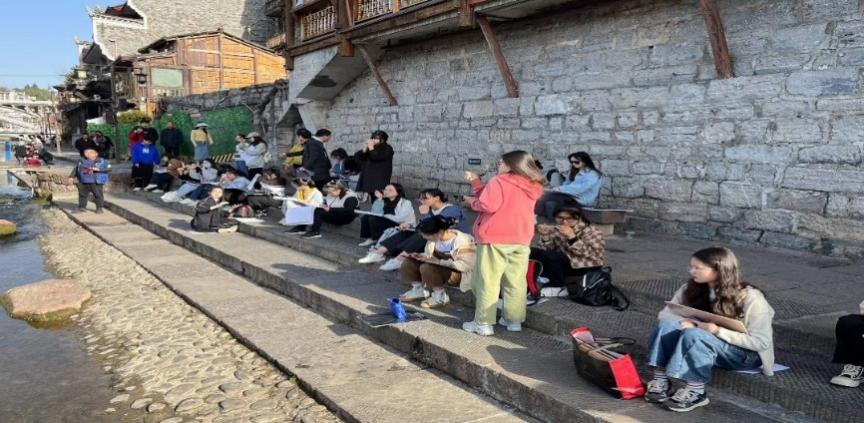 为进一步提升风景园林专业学生的专业认知与实践能力,2023年3月11日至3月14日,学院2021级风景园林班在刘清波、袁水清老师的带领下,赴湘西凤凰古城开展了美术写生实习。