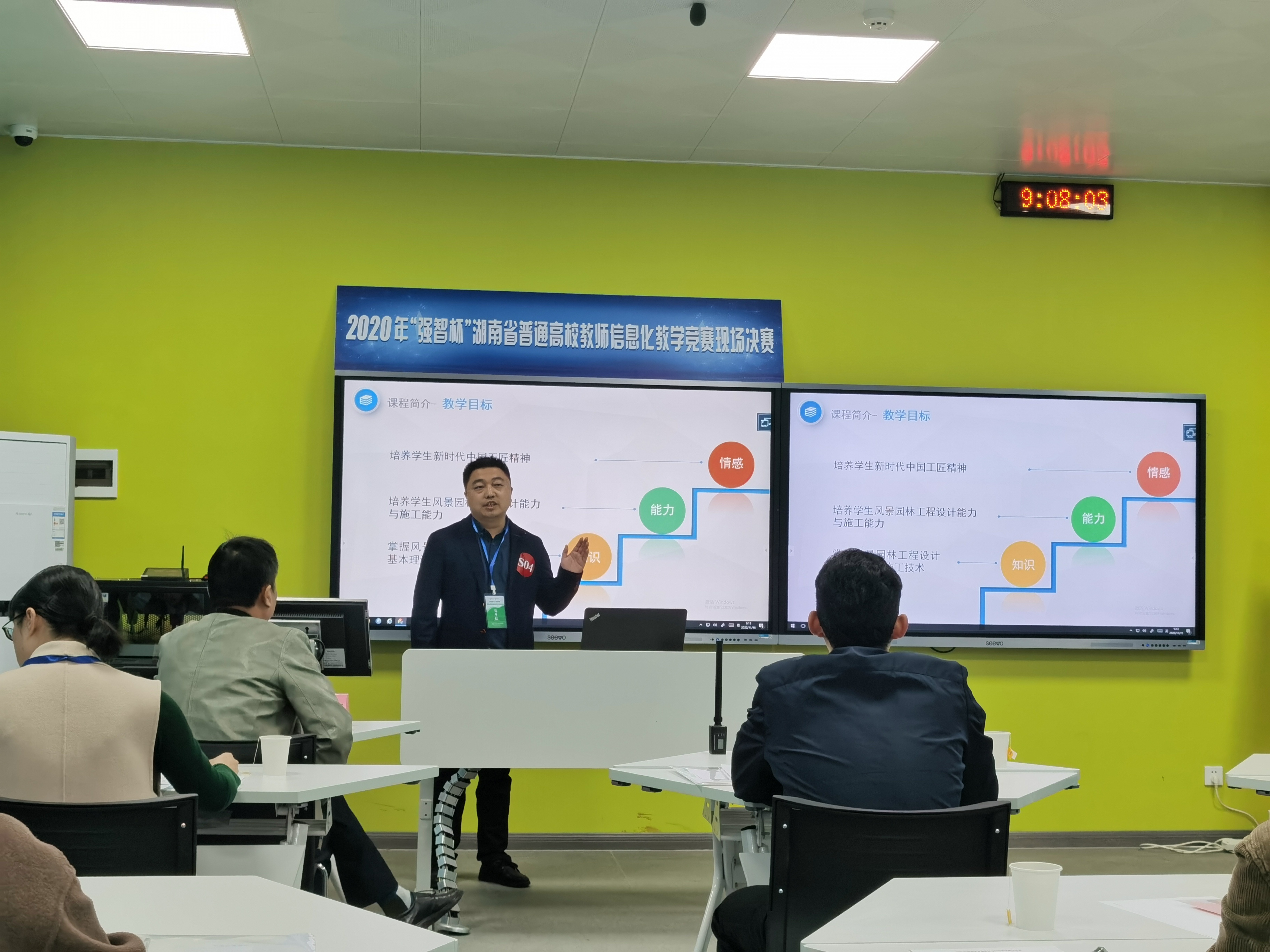 11月15日,由湖南省教育厅主办,湖南省高等教育学会教育技术专业委员会承办,长沙学院协办的2020年“强智杯”湖南省普通高校教师信息化教学竞赛现场决赛暨信息化教学改革成果交流研讨会在长沙举行,来自全省本科高校的84名优秀教师参加了本次决赛。经过激烈的角逐,我院孙青老师的参赛课程“基于虚拟仿真的《风景园林工程》信息化实训教学”获得实践竞赛组一等奖。