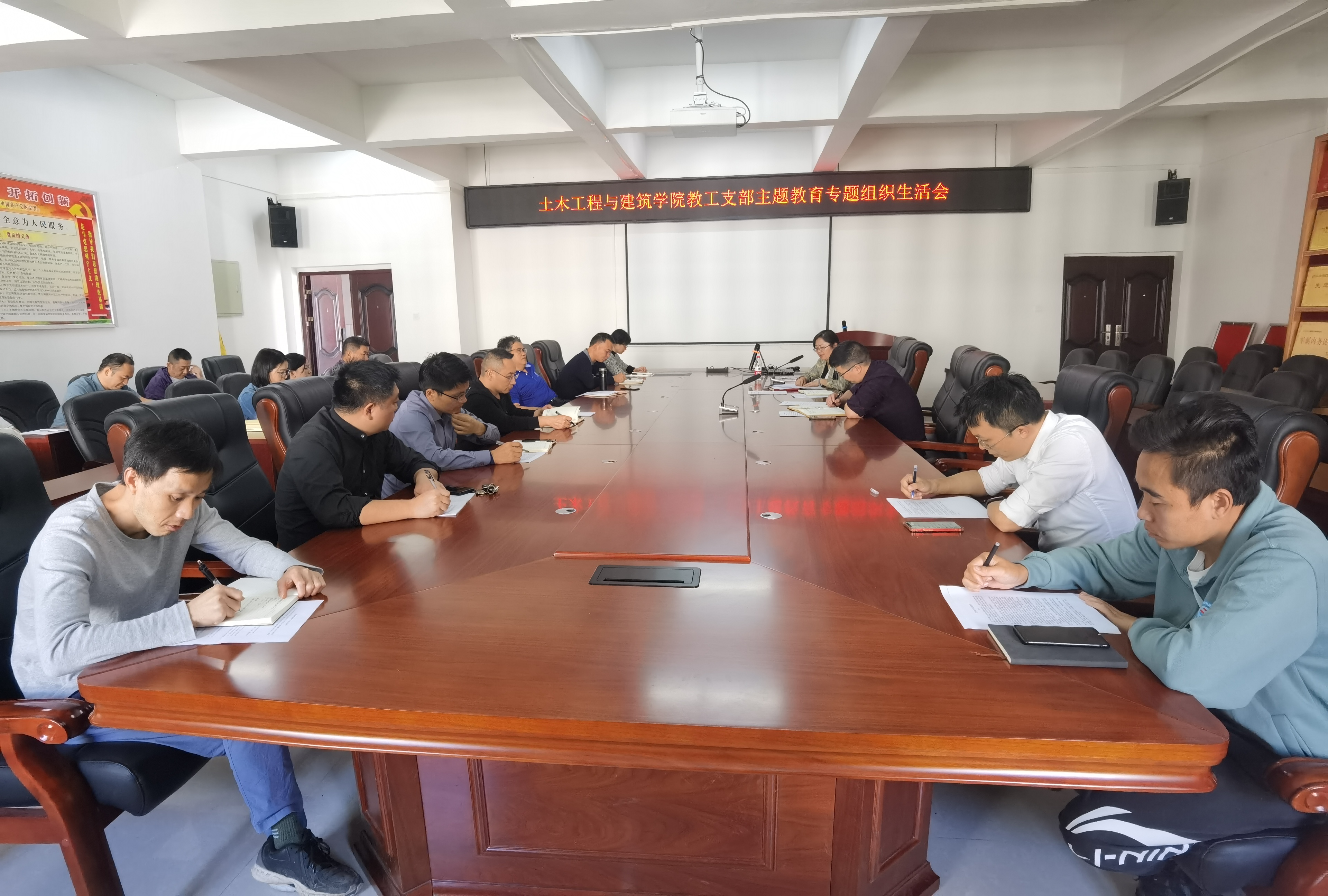 2023年10月17日,“土木工程与建筑学院教工党支部主题教育专题组织生活会”在学院会议室召开。会议由教工党支部书记彭艳同志主持,院党委书记向成绪等院领导班子成员以普通党员的身份参加了会议。