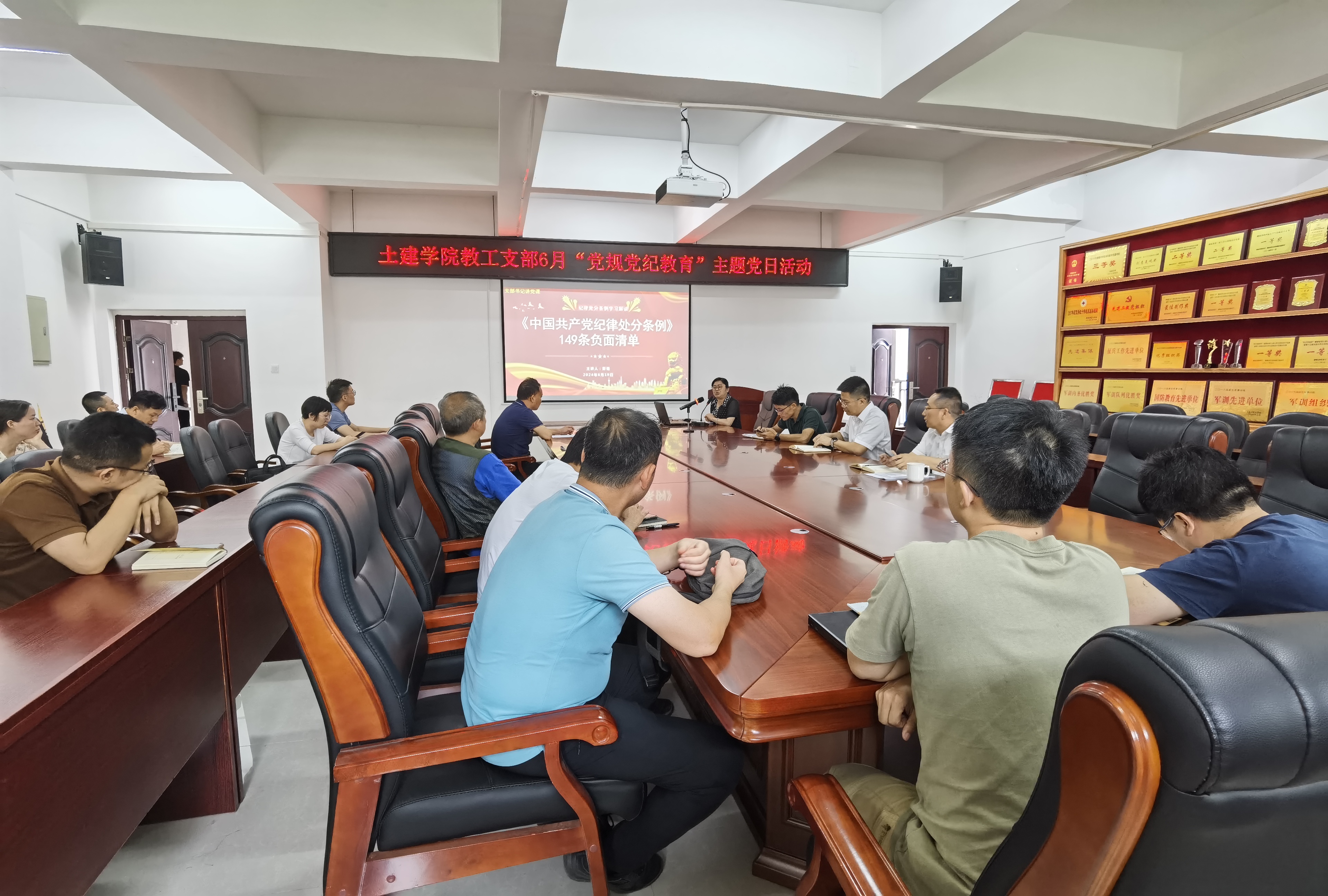 党课题为《条例》149条负面清单。清单包含六个方面,分别是政治纪律9个方面28条,组织纪律7个方面37条,廉洁纪律8个方面39条,群众纪律4个方面16条,工作纪律5个方面24条,生活纪律5个方面5条。彭书记结合工作实际,深入浅出的进行了讲解,通过这份负面清单的解读,在坐的每一个党员在思想上得到了警示,划下了一条坚决不能触碰的红线。大家一致认为,这堂党课进一步加深了自己对党的纪律建设的理解和认识。