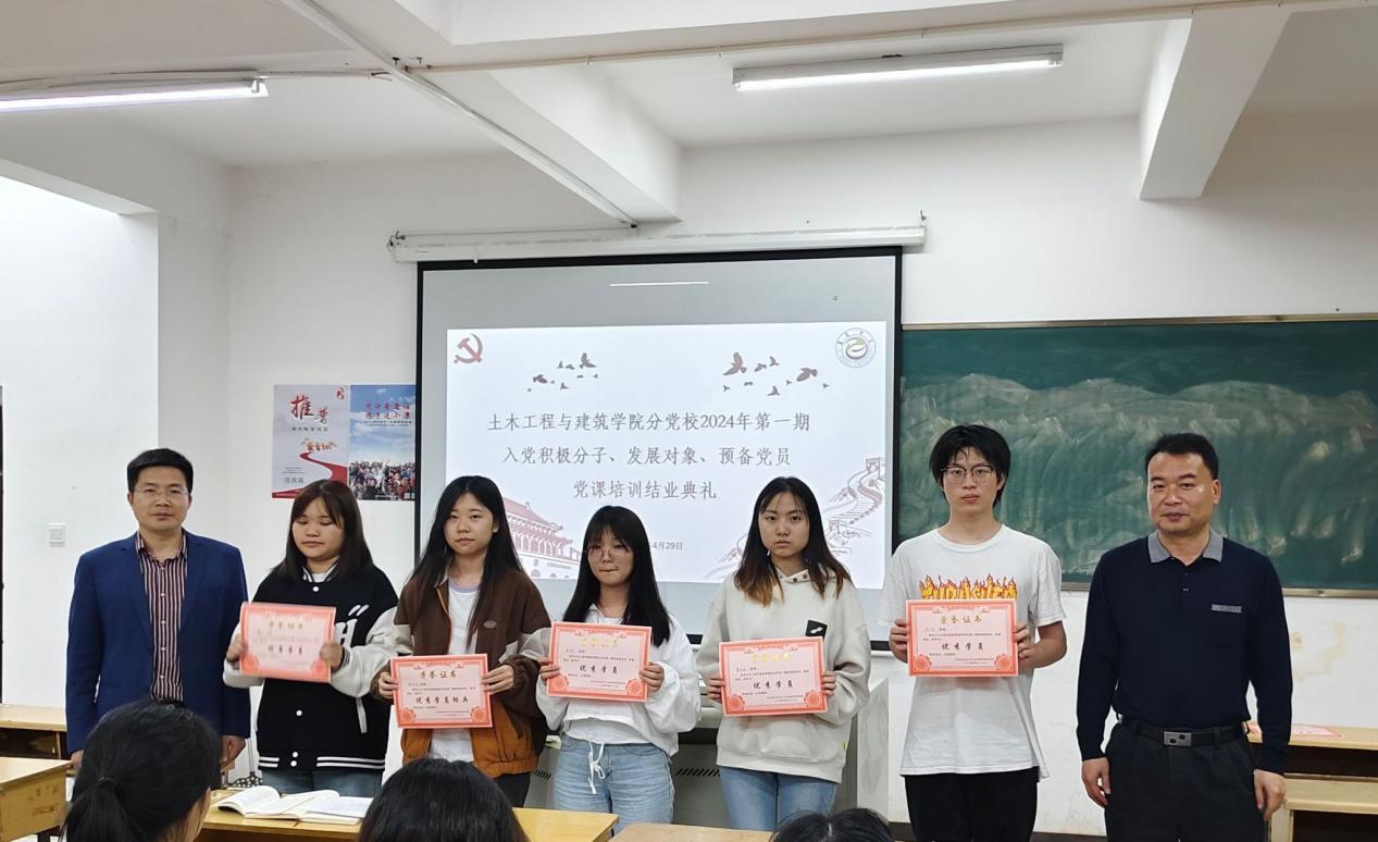 本网讯(学院通讯员 梅馨月)2024年4月29日晚7点,学院分党校2024学年第一期入党积极分子、发展对象和预备党员党课培训结业典礼在四教南4301举行。院院长吴吉林、党委副书记田建林及团委书记张晓阳出席典礼,学院全体入党积极分子、发展对象、预备党员参加典礼。