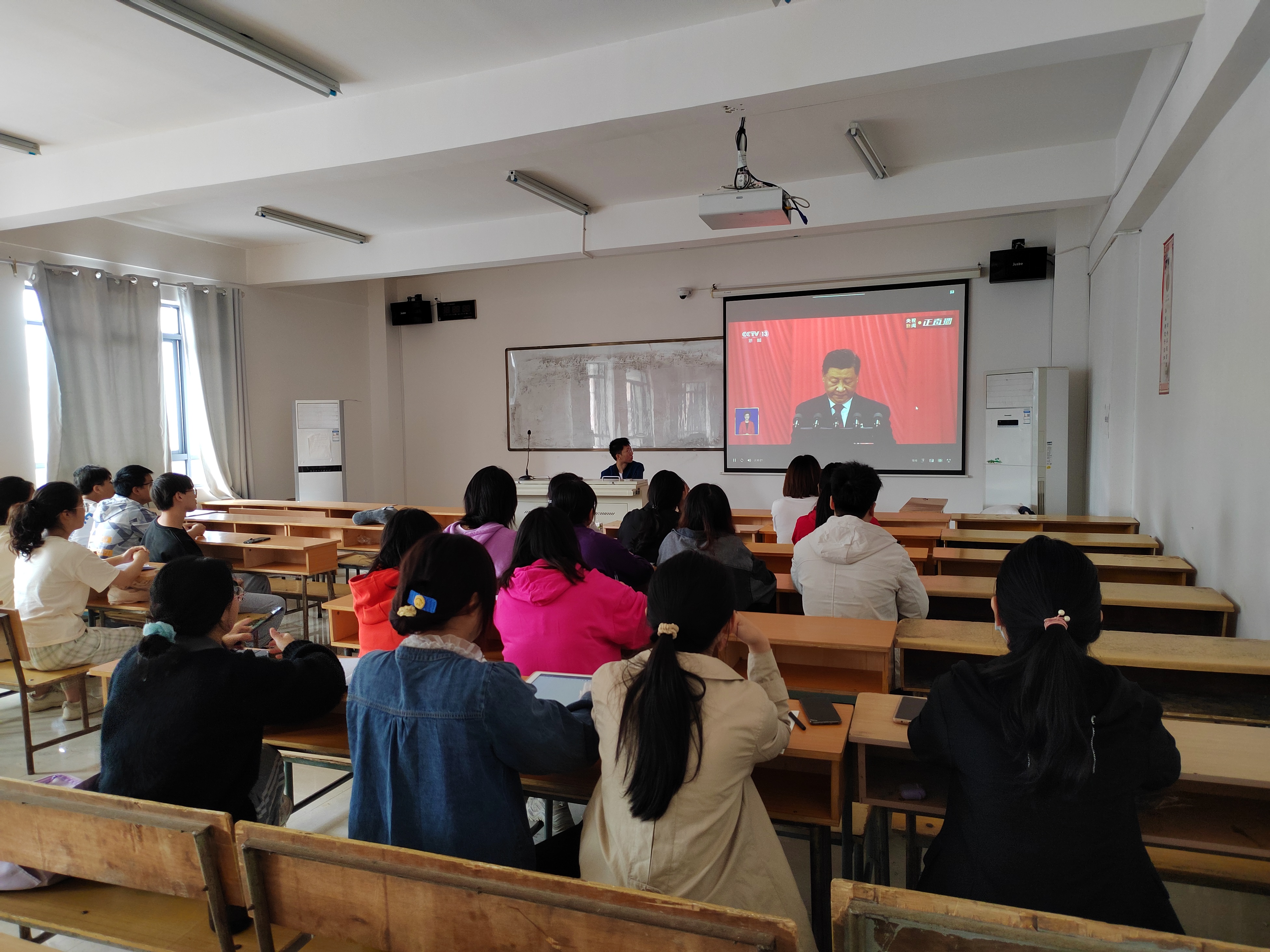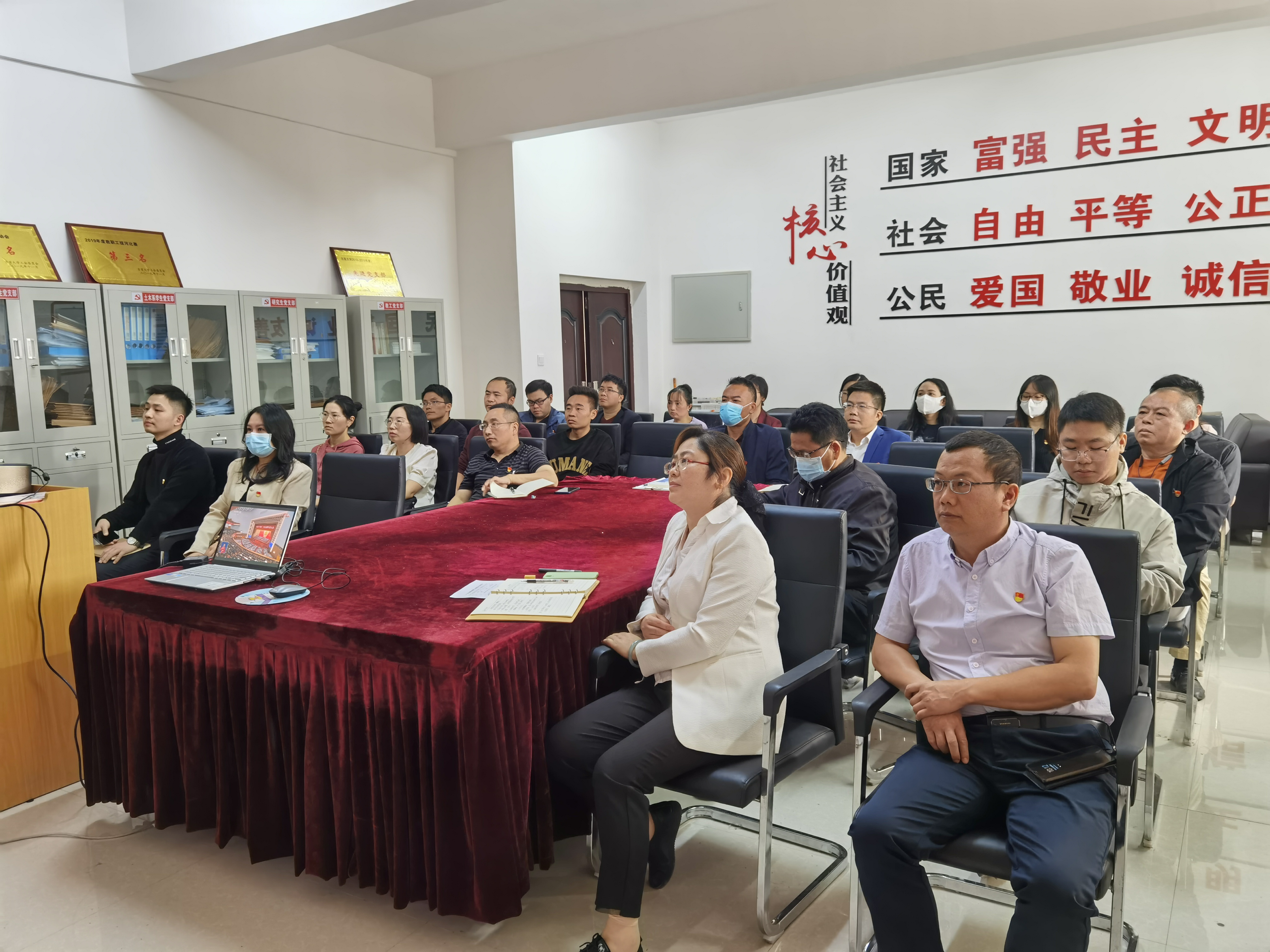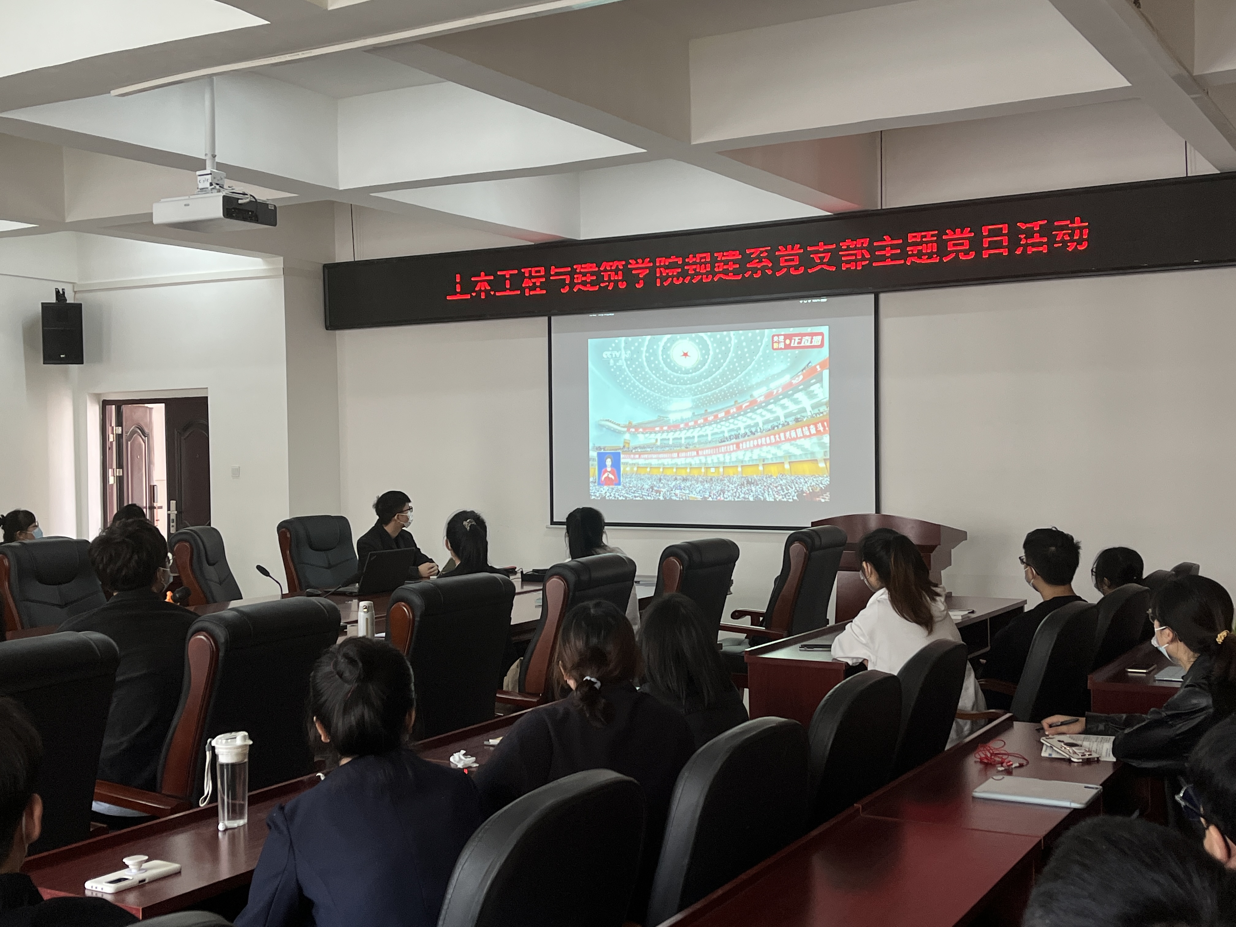 图为 教工支部及研究生支部收看现场 |