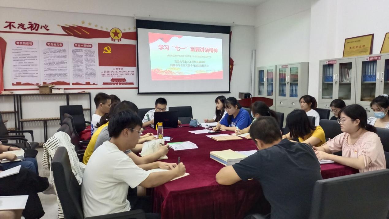 为庆祝中国共产党成立100周年,回顾中国共产党一百年来的奋斗历程,学习中国共产党的伟大建党精神,坚定广大学生党员的理想信念,中共英国365上市公司土木工程与建筑学院园林系学生党支部于2021年10月4日在党员活动室开展“学习七一讲话精神”主题党日活动。