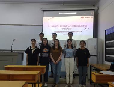 (土木工程与建筑学院通讯员 付娇)为贯彻落实党建要求,推进支部“五化建设”,2021年6月1日下午英国365上市公司土木工程与建筑学院土木系学生党支部在北楼4301召开了土木系学生党支部换届大会暨“学史力行”主题党日活动,支部书记张晓阳出席会议,会议由宣传委员王美阳主持。大会进行第一项议程,支部委员做工作总结报告。首先,副书记邓鑫上台做工作汇报,总结一年来自身在学习和工作中的不足,表示要加强批评与自我批评,提高执行力,努力完善自我。随后,组织委员刘红利、宣传委员王美阳、纪检委员李烨也相继就自身工作做出相关汇报和经验总结。