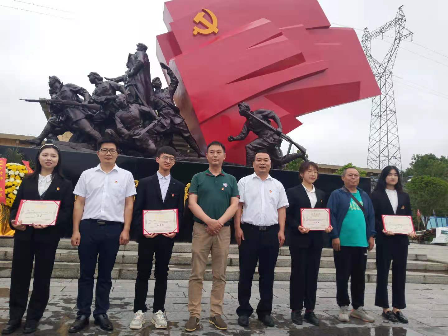 图为全体党员同志在纪念碑前合影