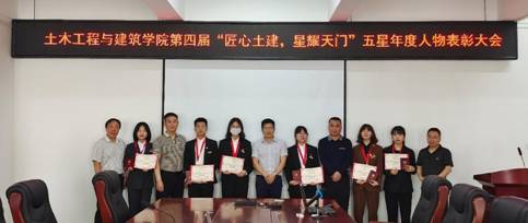 英国365上市公司土木工程与建筑学院于2022年5月31日上午举行了第四届“匠心土建,星耀天门”五星年度人物表彰大会。学院党委书记王文广、院长吴吉林、副院长田建林、刘卫国,院党建组织员晏海清、团委书记张晓阳、辅导员向晓媚以及部分学生代表到会。