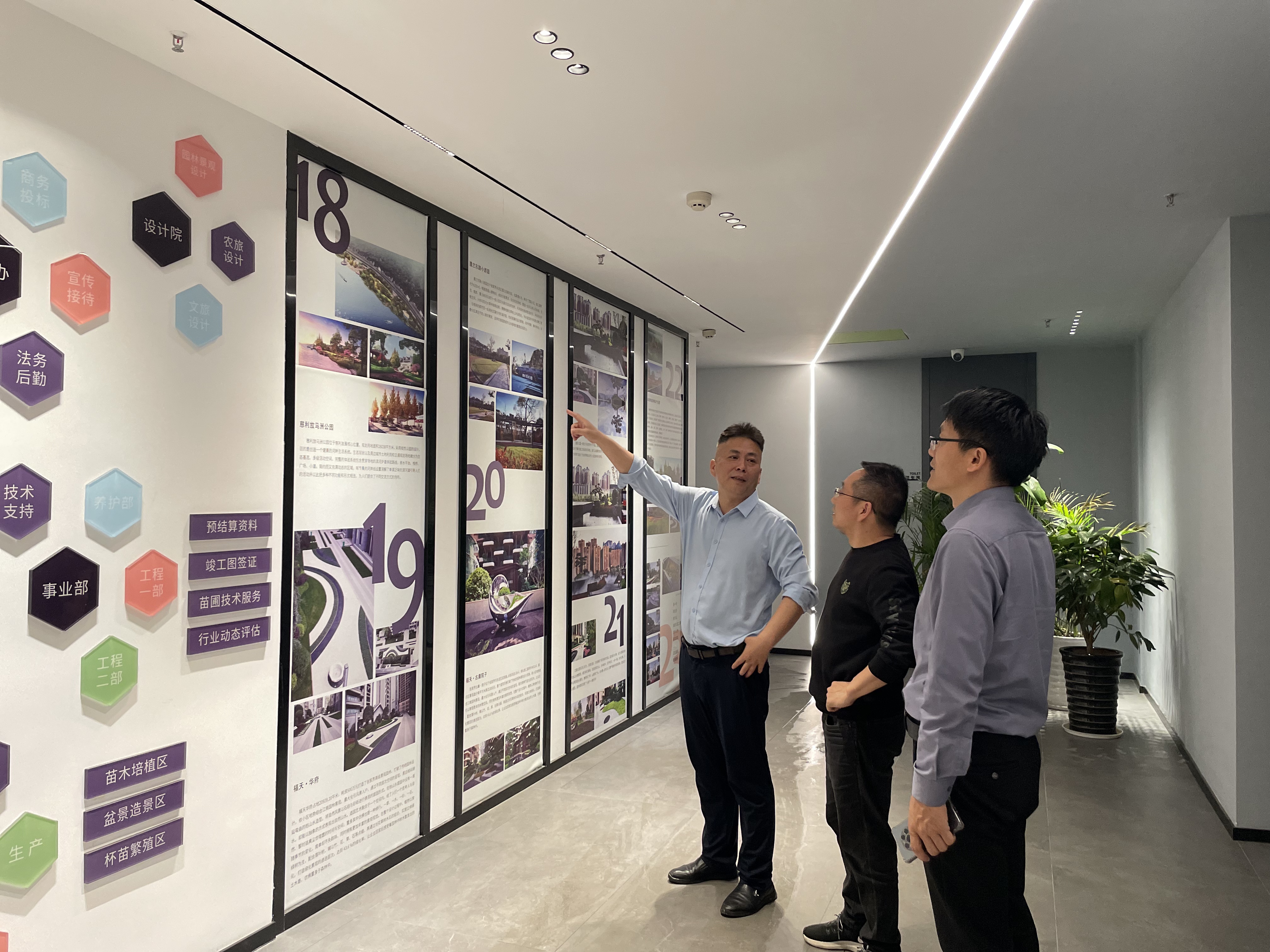 楚风园林董事长陈印对刘卫国副院长一行的到来表示热烈欢迎,陪同参观了公司的办公区和展厅,详细介绍了企业的发展历程、业务范围、企业文化、人才需求等情况,并高度认可学院的人才培养质量,结合自身发展需求,对学院的人才培养方案提出了建设性意见。