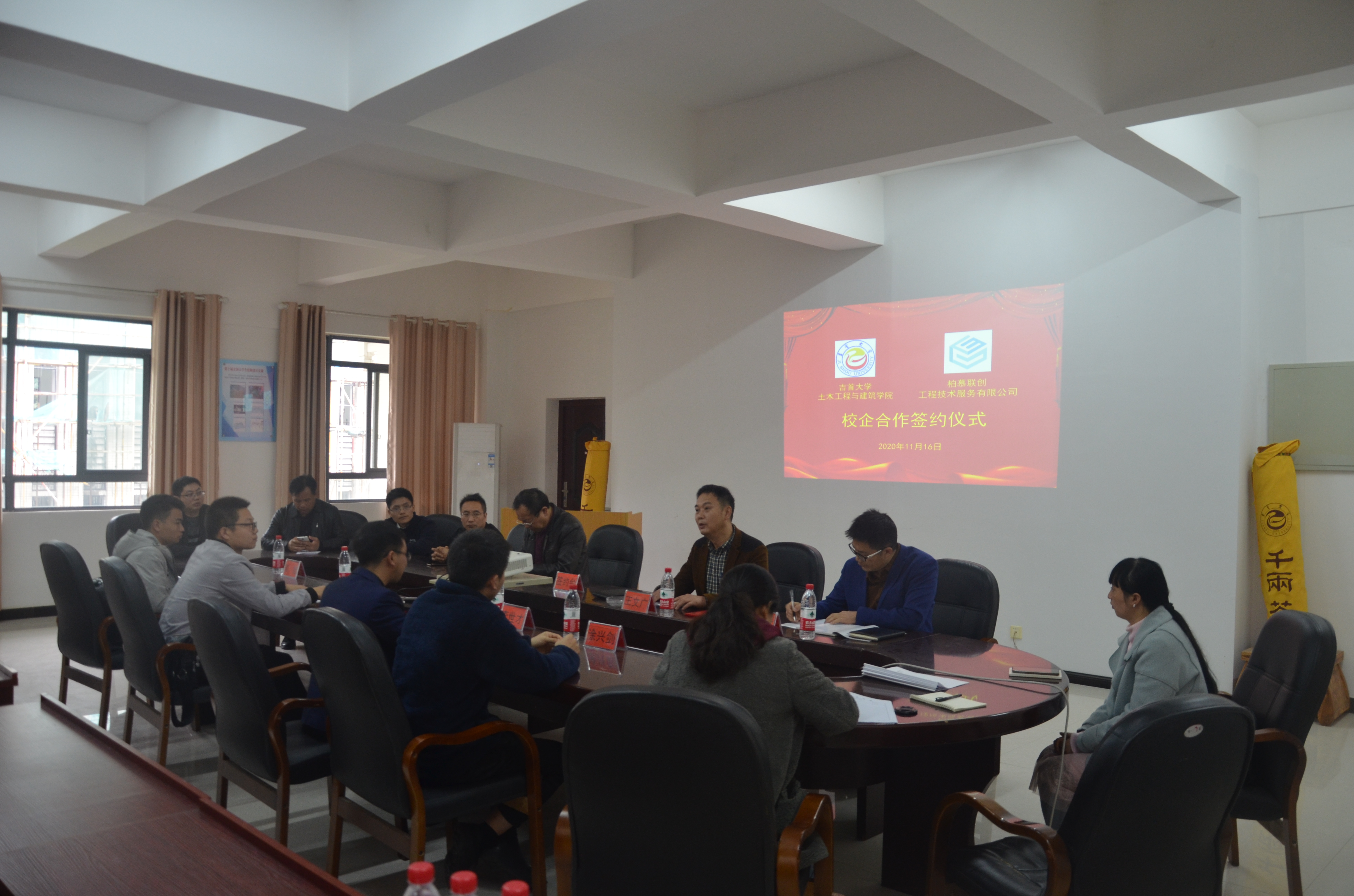 2020年11月16日上午,学院与柏慕联创工程技术服务有限公司的校企合作签约仪式举行。柏慕联创总经理李世才、总工程师刘振国,学院书记王文广、副书记晏海清、副院长吴吉林等领导及双方有关人员出席了签约仪式。签约仪式由晏海清副书记主持。