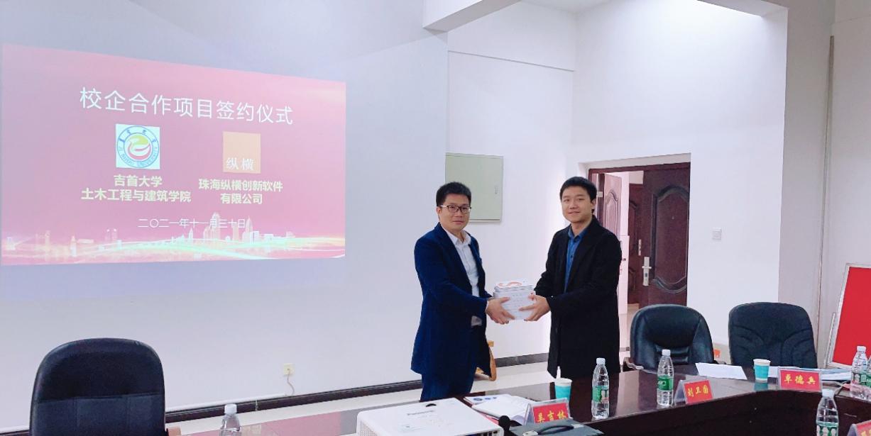 2021年11月30日上午11时,学院在会议室举办了与珠海纵横创新软件有限公司开展校企产学研合作签约暨授牌仪式。吴吉林院长、田建林副院长、刘卫国副院长、卓德兵院长助理和土木工程系龙自立主任以及珠海纵横创新软件有限公司代表王文鹏、祝志宾、邓子奇出席仪式,仪式由院党委副书记晏海清主持。